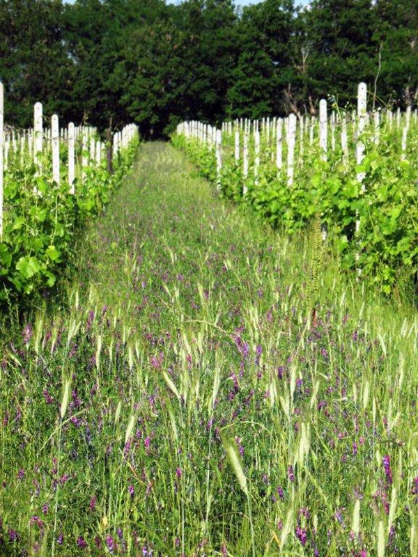 Luomuviininviljelyssä viiniköynnösten sekaan kylvetään usein muita vihreitä kasveja ja yrttejä. Myös viinitarhan ympärille istutetaan lisää kasvustoa kuten pensaita ja puita sekä perustetaan niittyjä. Kaikki nämä kasvit hoitavat maaperää, tuovat takaisin hyödylliset hyönteiset ja organismit sekä suojaavat eroosiolta ja maan ravinnehävikiltä. Myös typpeä ja hiiltä sidotaan näin maahan, mikä puolestaan ehkäisee ilmastonmuutosta.