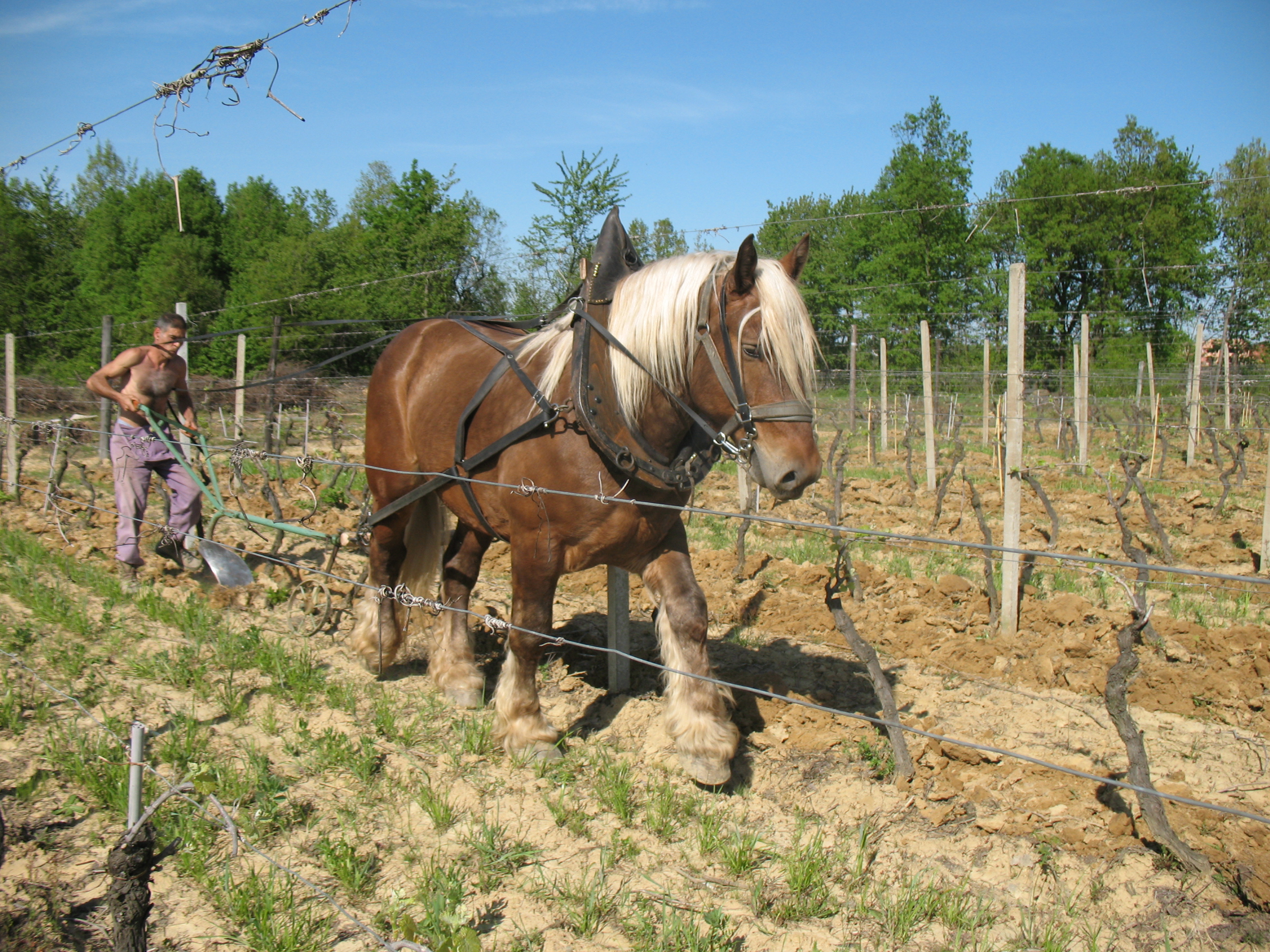 Titouan-hevonen tekee nyt paljon tehtäviä joita hoitivat ennen mekaaniset laitteet. Titouan mahdollistaa hyvän humuksen muodostumisen koska maa ei murskaannu samalla tavalla kuin raskaita mekaanisia laitteita käytettäessä. Hevosilla on sitä paitsi myös hyvin läheinen suhde kasvielämään, ja jo ainoastaan niiden läsnäolo vaikuttaa myönteisesti viiniköynnöksiin. Hevosen lanta on myös oleellinen osa kompostin laatua ja tehokkuutta.